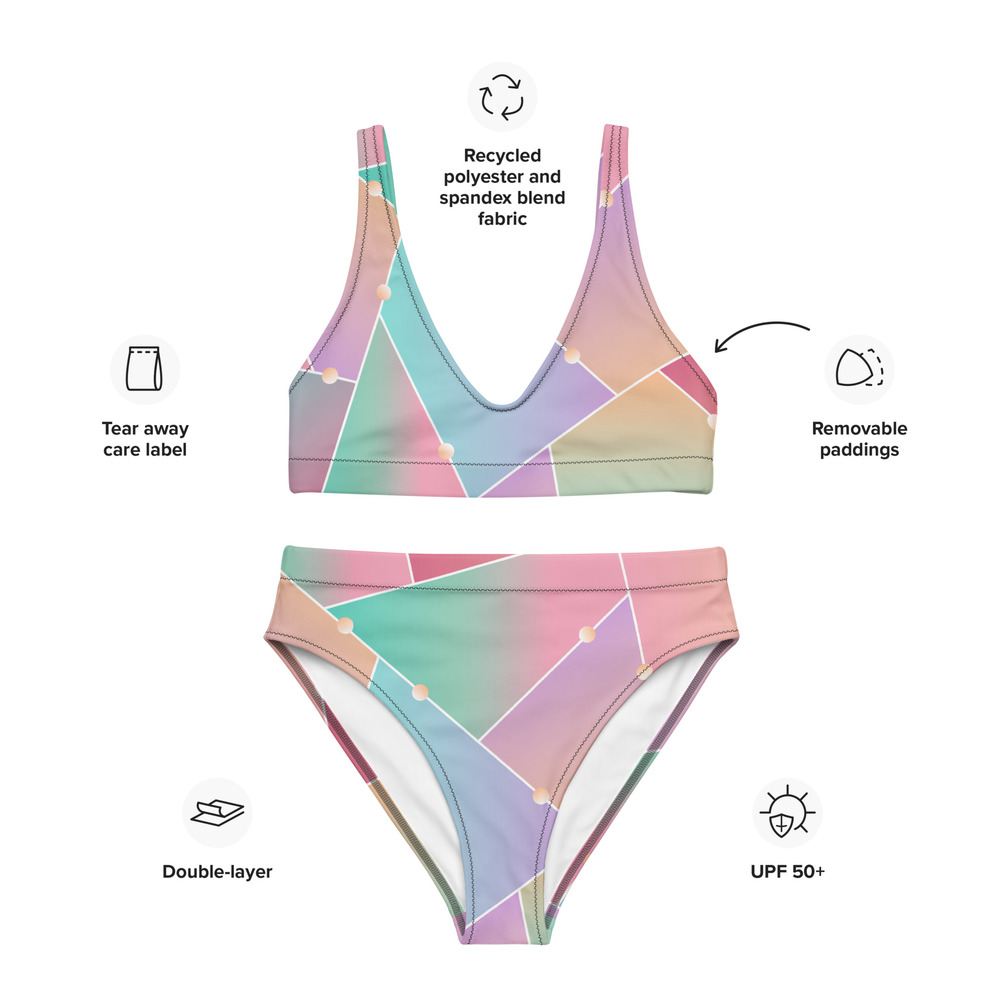 This Blxck Bat Recycled High-Waisted Bikini is destined to become the only swimsuit you want to reach for in your drawer! The bottoms are high-waisted, and the top has removable pads. Both come with a tear-away care label. These features make it comfortable and flattering on many different body types. The only thing this swimwear gem is missing is your beautiful designs.